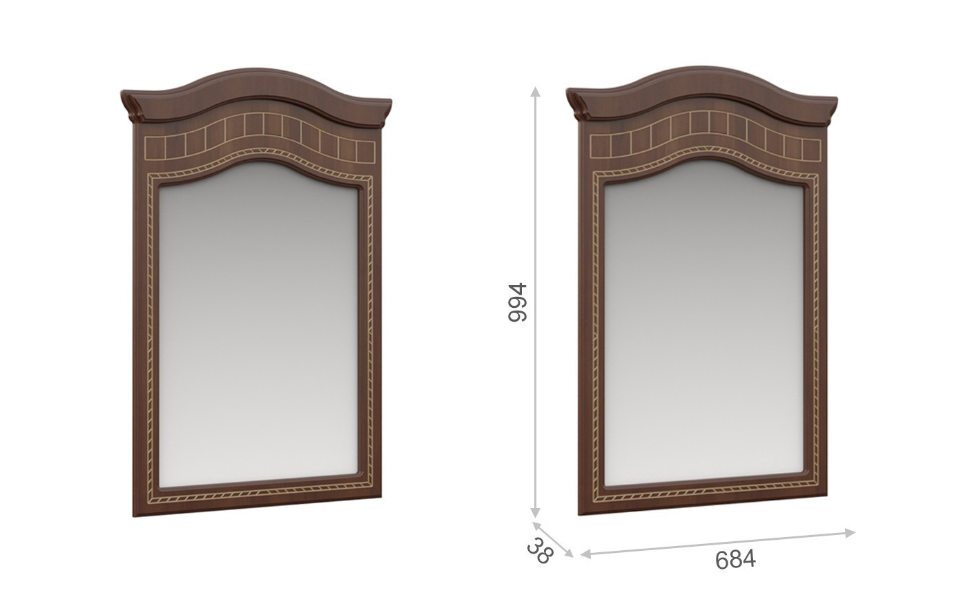 • Зеркало: Ширина 684 мм х Глубина 38 мм x Высота 994 мм