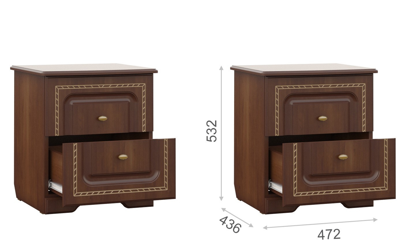 • Тумба Прикроватная: Ширина 472 мм х Глубина 436 мм x Высота 532 мм - 2шт